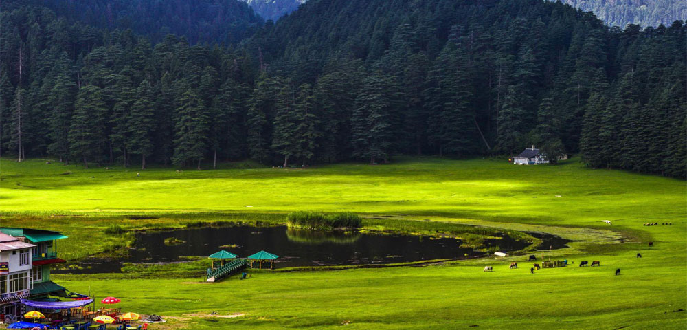Khajjiar popularly known as Mini Switzerland is a place with enchanting verdant meadows situated amidst the deodar trees in Chamba.Often compared with Swiss Mountain meadows, Khajjiar is a wide grassy clearing around a pond in the small temple of Khajji Nag that dates to the 12th century AD.