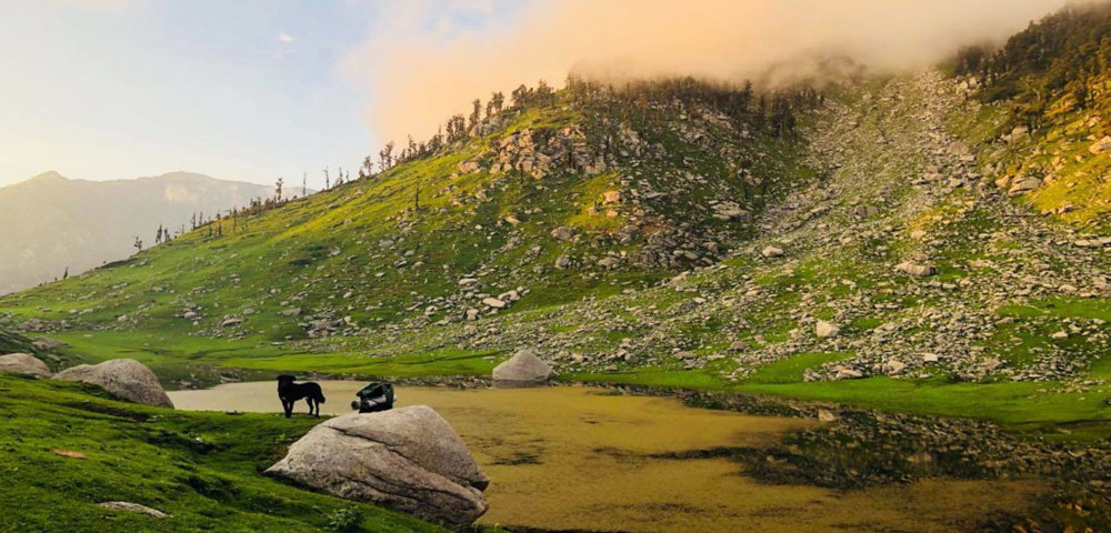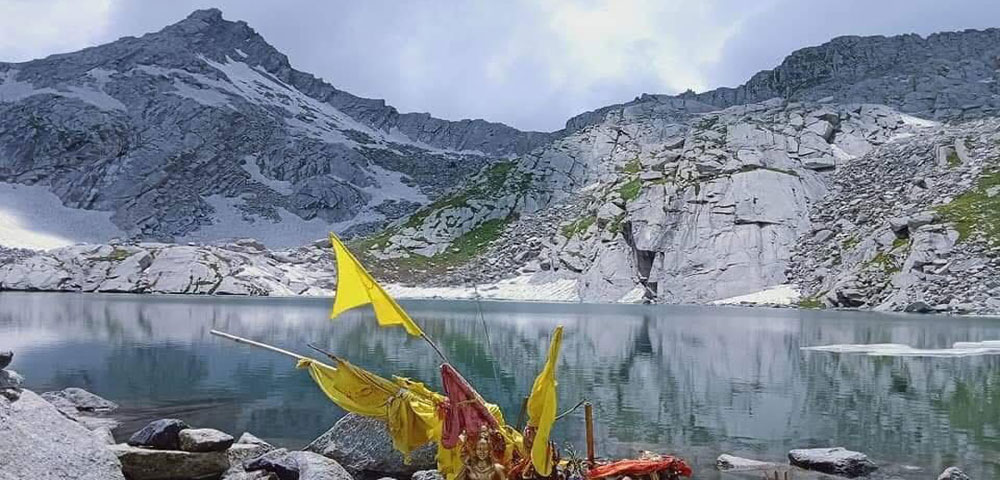 Lam Dal Lake Trek. Dhauladhar reserves a special mention for its high altitude glacial lakes which have mythical backgrounds and are considered extremely sacred by local residents, who make pilgrimage to these lakes during the monsoon and post monsoon season. These lakes are considered to be the abode of Lord Shiva and located in the one mountain range. The most prominent among them in the Dhauladhar region are the Lam Dal and the Nag Dal. Dal is called to a Lake. Lam Dal is at an elevation of 3900 meters and approachable from Minkiani Pass, Inderhar Pass and Gaj Pass.